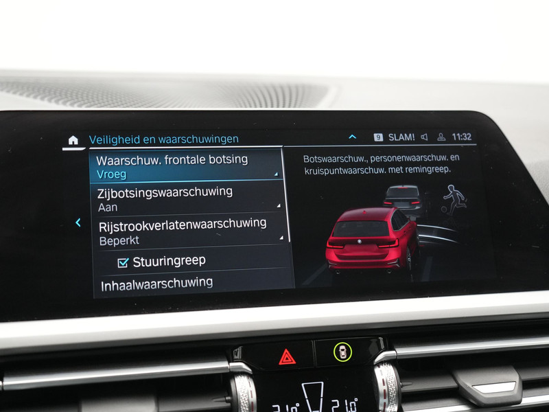 In de BMW 3-serie Touring heeft uw veiligheid en die van uw omgeving prioriteit. Verkeersbord-detectie herkent verkeersborden en toont deze op het instrumentarium van de auto. Het Lane-keeping systeem registreert permanent of u binnen de lijnen van de rijstrook blijft; dwaalt u onbedoeld af, dan waarschuwt het systeem en corrigeert de koers. Veilig inhalen gaat moeiteloos dankzij actieve dodehoekdetectie. Het veiligheidssysteem waarschuwt als een ander voertuig in uw dode hoek rijdt. De veiligheid van deze auto wordt verder verhoogd door front assist, forward collision warning system, hill hold functie, brake assist, vermoeidheidsherkenning en bandenspanningcontrolesysteem.