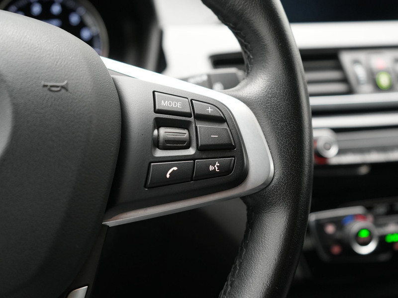 Kommaar-kommaar-kommaar, aldus de achteruitrijcamera. Iedere centimeter vrije ruimte komt haarscherp in beeld. Schadevrij inparkeren maar! Als u regelmatig met een aanhanger of een fietsendrager op pad bent, is de afneembare trekhaak een praktische extra. Deze auto gaat met u in gesprek. Hij vertelt u dankzij remote services alles over de status van diverse onderdelen en laat zich desgevraagd ook activeren. Gewoon via uw smartphone. Gemakkelijk en veilig is de bediening het audiosysteem en het navigatiesysteem met knoppen op het stuur. De audio-kwaliteit is geweldig, dankzij de DAB-ontvangst. Deze BMW X1 is voorzien van sensoren aan de achterzijde om een achteropkomend verkeer waarschuwing te geven als de afstand tussen u en een achterligger te klein is. Ook is de BMW uitgerust met: automatische airconditioning, regensensor, cruise control, sportstuurwiel, automatisch dimmende buitenspiegels en isofix-aansluiting.