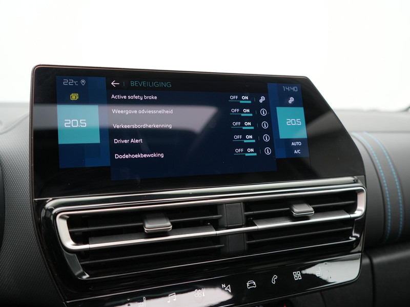 De intelligente veiligheidssystemen in deze auto waken continu over uw veiligheid. In het instrumentarium ziet u tijdens de rit ook de belangrijkste verkeersborden aangegeven, die de auto automatisch voor u leest. Onbedoeld buiten de rijstrook raken wordt voorkomen door het Lane-keeping systeem. Forward collision warning waarschuwt voor een kop-staart botsing. U bent mede dankzij dodehoekdetectie, hill hold functie, brake assist, vermoeidheidsherkenning en bandenspanningcontrolesysteem steeds veilig onderweg.