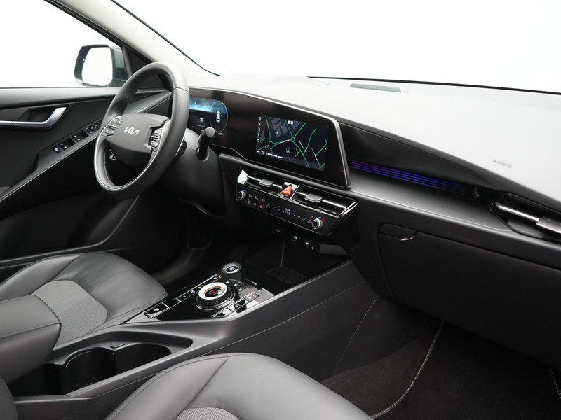Movement that inspires, zeggen ze bij Kia. En daarmee zijn ze al enkele jaren achter elkaar een van de drie populairste merken. Deze hybride auto heeft een sterke, zuinige elektromotor én een verbrandingsmotor. Kortom: uitstekende rijprestaties en een veel lager brandstofgebruik. Ga samen met uw bijrijder lekker zitten in de verwarmbare voorstoelen. Zo\'n verwarmd stuurwiel is een comfortabele extra, zeker in de winter. Bij de rijke uitrusting horen ook schuif- en kanteldak, 16 inch lichtmetalen velgen, halflederen bekleding, LED-dagrijverlichting, in delen neerklapbare achterbank en LED-achterlichten.