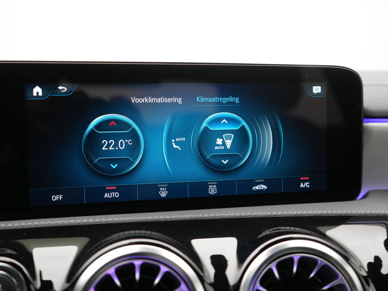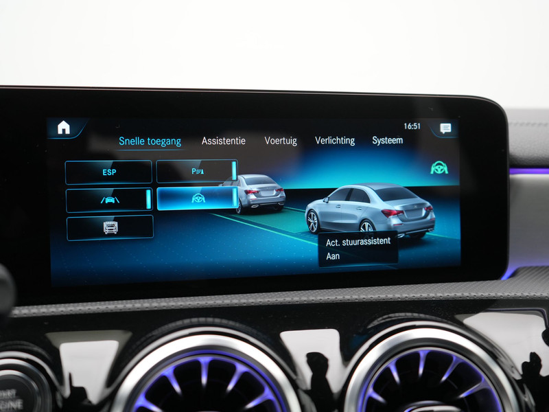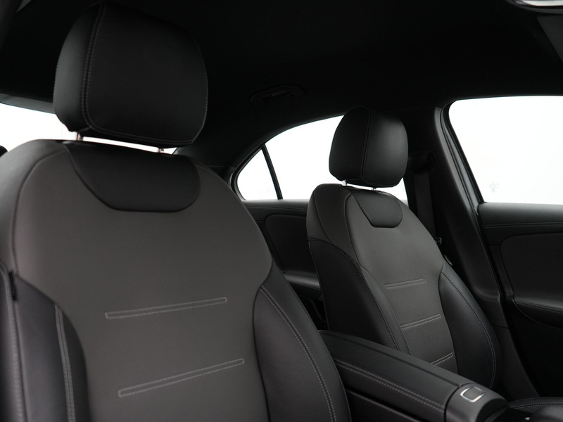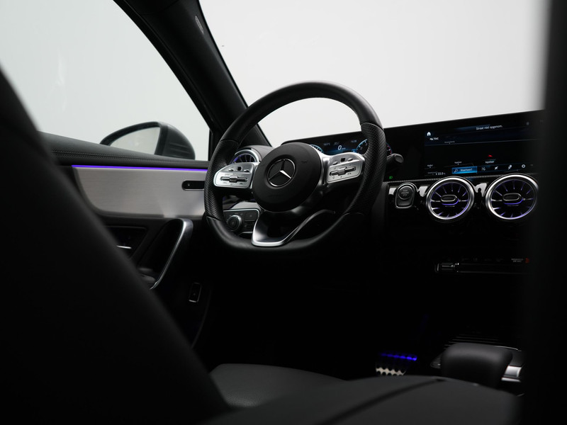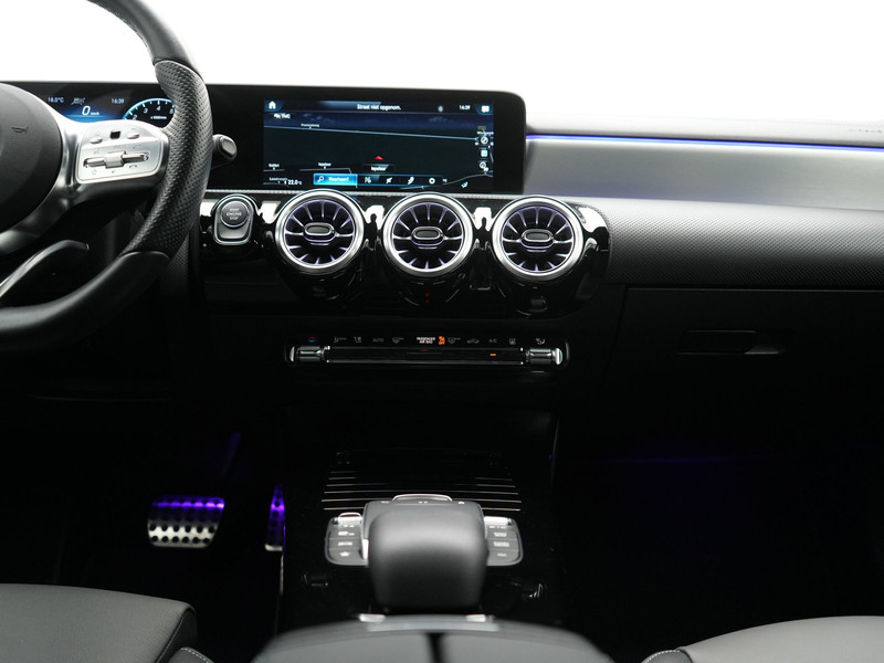 Noemt u eens een Duits B-merk? Kennen ze niet. Uitstekende auto\'s, al vele decennia lang. Dat geldt ook voor deze. Bent u bestand tegen een beetje bekijks? Dan zal de AMG Line Exterieur u zeker aanspreken. Elektrisch rijden of liever benzine? Kiezen hoeft niet, want de hybride motor maakt het allebei mogelijk. Om het af te maken is deze auto voorzien van een lederen interieur. \'s Winters op pad gaan kan een behoorlijke uitdaging zijn. Daarom is deze Mercedes-Benz A-klasse voorzien van weldadige verwarmbare voorstoelen. De sportstoelen houden u en uw passagier stevig vast tijdens een snelle rit, maar bieden ook altijd comfortabele ondersteuning. Opvallend is de geavanceerde matrix LED-verlichting met daglichtkwaliteit. De koplampen dimmen automatisch het deel van de lichtstraal waar voor- of tegenliggers in rijden. De overige segmenten blijven aan en verlichten de weg maximaal. In deze Mercedes-Benz profiteert u onder andere ook van: 18 inch lichtmetalen velgen, AMG Line Exterieur, zwarte hemelbekleding, in delen neerklapbare achterbank, LED-achterlichten en verstelbare lendensteunen.