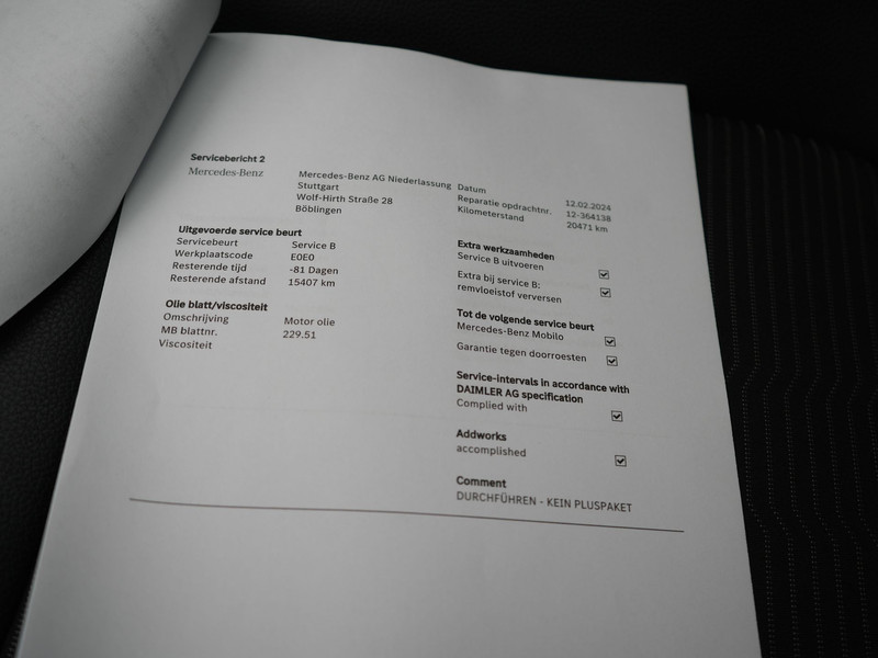 Het digitale dashboard in deze auto maakt personalisatie van uw cockpitinterface mogelijk. Soepel inparkeren in de krapste parkeervakken. De achteruitrijcamera maakt het mogelijk. Ingebouwde spraakbediening maakt het mogelijk om de auto te bedienen zonder dat uw aandacht wordt afgeleid. U weet altijd hoe de auto eraan toe is dankzij Connected Services. Ook handig voor de garage en de wegenwacht. Even de app uitlezen en klaar! Het navigatiesysteem met harde schijf zorgt ervoor dat u snel en ontspannen op uw bestemming aankomt. De uitrusting van deze Mercedes-Benz is met WIFI-hotspot, electronic climate control, schakelpaddles aan het stuur, DAB ontvangst, regensensor en cruise control behoorlijk compleet.
