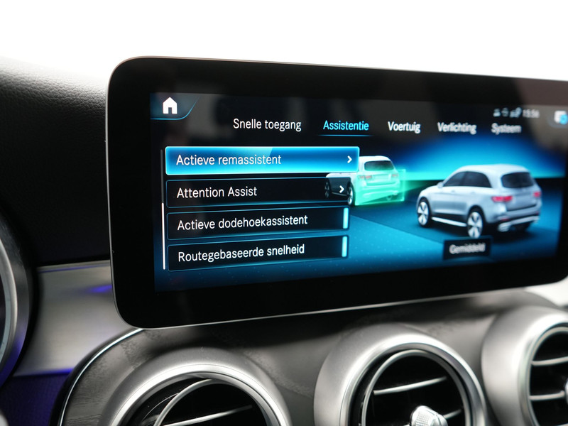 Voor het overzicht tijdens iedere rit is deze Mercedes-Benz GLC-klasse voorzien van een gemakkelijk afleesbaar digitaal dashboard. Een onopvallend paaltje of een overstekend kind achter de auto brengt risico\'s met zich mee. Gelukkig laat de achteruitrijcamera feilloos zien of alles veilig is. Connected Services voegt nog meer comfort en veiligheid toe aan deze auto. U kunt het audio-installatiesysteem en het full map navigatiesysteem bedienen met de knoppen op het stuur of zelfs met uw stem. Ook handig is de draadloze telefoonlader. Zonder snoeren en kabels uw smartphone bijtanken! Deze Mercedes-Benz is voorzien van WIFI-hotspot, automatische airconditioning, regensensor, cruise control, sportstuurwiel en automatisch dimmende buitenspiegels.