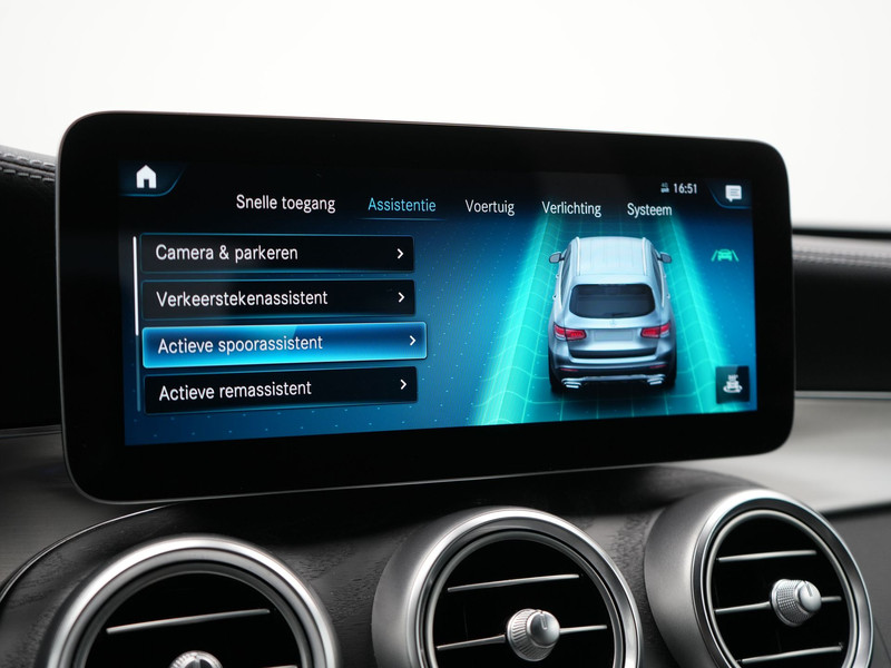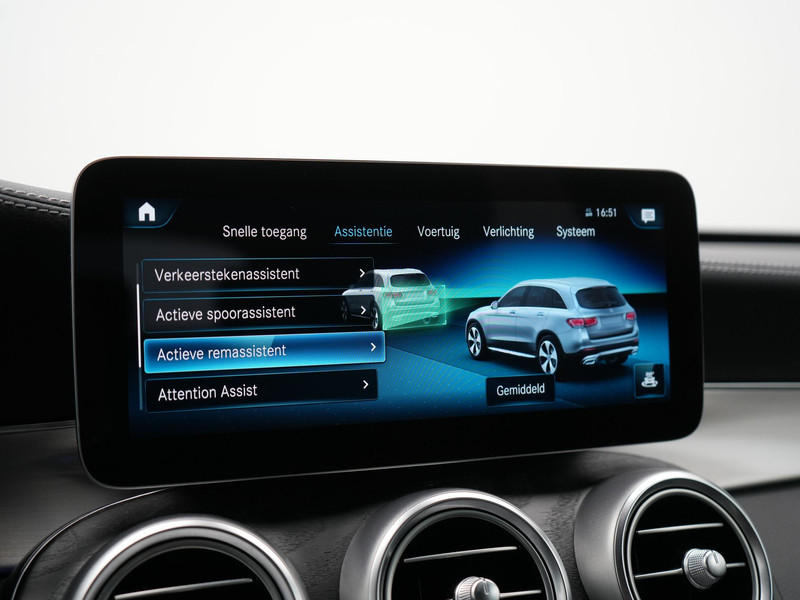 Zoals u mag verwachten van deze Mercedes-Benz GLC-klasse is hij uitgerust met een reeks aan actieve veiligheidssystemen. Verkeersborddetectie herkent tijdelijke en permanente verkeersborden langs en boven de weg. Forward collision warning waarschuwt voor een kop-staart botsing. Vermoeidsheidsherkenning neemt tekenen van vermoeidheid waar bij de bestuurder. Het systeem voorkomt dat er daardoor ongelukken gebeuren. Bovenop deze veiligheidsfeatures heeft deze Mercedes-Benz bovendien autonoom remsysteem en bandenspanningcontrolesysteem.