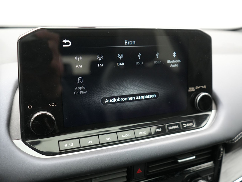 Aan boord van deze Nissan houden verschillende geavanceerde systemen voor u de weg in de gaten. Ze waarschuwen u voor noodsituaties en kunnen in een aantal gevallen ook zelf ingrijpen. Blik permanent op de weg en toch belangrijke functies in beeld? De head-up display projecteert rij-informatie op de voorruit! De actuele snelheidslimiet, een inhaalverbod en andere verkeersborden; de verkeersborddetectie ondersteunt u tijdens elke rit. Het Lane-keeping systeem garandeert dat u zich niet onverhoeds buiten de lijnen van de rijstrook begeeft. U bent mede dankzij dodehoekdetector detectiesysteem, forward collision warning system, hill hold functie, brake assist, vermoeidheidsherkenning en bandenspanningcontrolesysteem steeds veilig onderweg.
