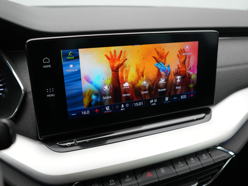 In de ŠKODA Octavia Combi heeft uw veiligheid en die van uw omgeving prioriteit. De camera van de verkeersborddetectie herkent verschillende soorten verkeersborden en toont deze op het dashboard. Deze ŠKODA Octavia Combi is ook behulpzaam als het gaat om een rechte koers. Het Lane-keeping systeem signaleert en corrigeert als u onbedoeld de rijstrooklijnen dreigt te overschrijden. Het forward collision warning-systeem is constant alert en detecteert via sensor de afstand tot voorliggers. Wordt die te klein, dan volgt een automatische waarschuwing. De auto is ook uitgerust met head-up display, dodehoekdetectie, hill hold functie, vermoeidheidsherkenning, autonoom remsysteem en bandenspanningcontrolesysteem.