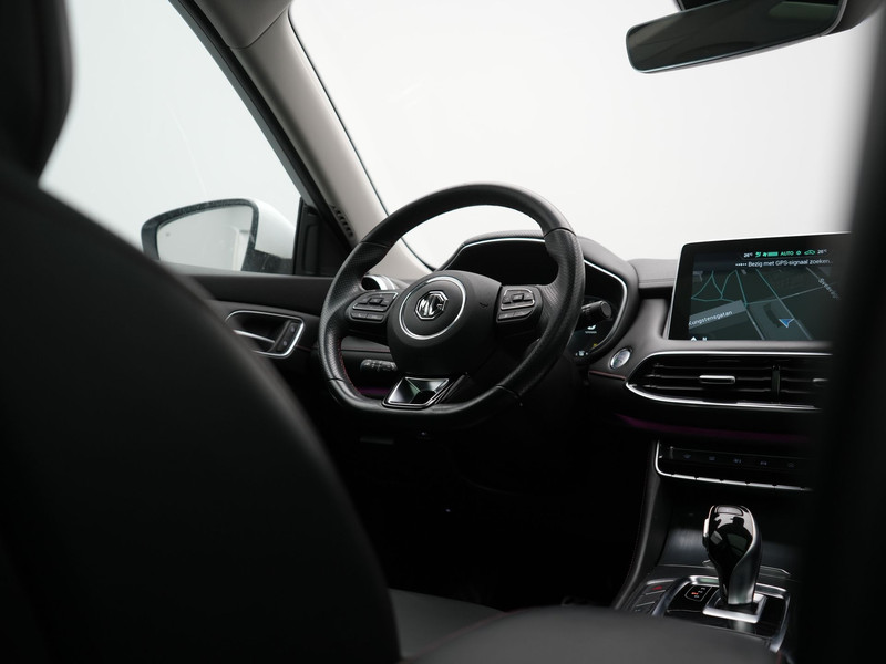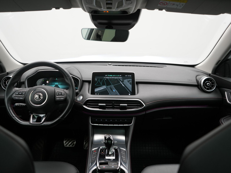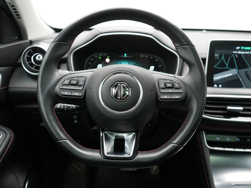 Het digitale dashboard rekent mee, denkt mee en rijdt mee. Alle info overzichtelijk in beeld, overal. De vier camera\'s genereren samen een 360 graden beeld rond de auto, zodat u een volledig overzicht hebt van wat er rondom uw auto gebeurt. Adaptive cruise control houdt de ingestelde snelheid vast en houdt automatisch afstand tot uw voorligger. Kop aan kont langzaam rijden: dan is afstand houden soms lastig. De file assistent helpt en zorgt automatisch voor veilige ruimte tot de voorligger. Ook als die tot stilstand komt. Pech of storing, altijd vervelend. Maar met Connected Services weet u direct wat eraan scheelt. En dus ook wat er moet gebeuren. Met full map navigatiesysteem, electronic climate control, DAB ontvangst, regensensor, keyless entry en automatisch dimmende binnenspiegel is deze MG helemaal compleet.