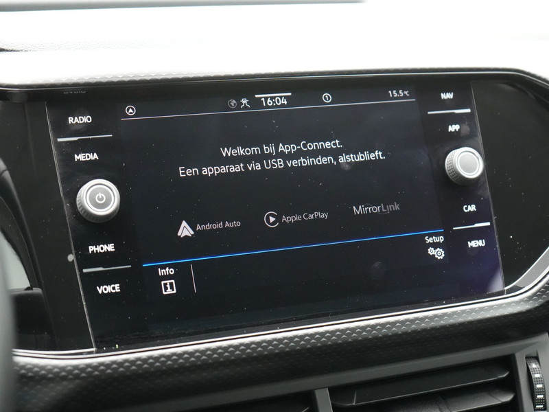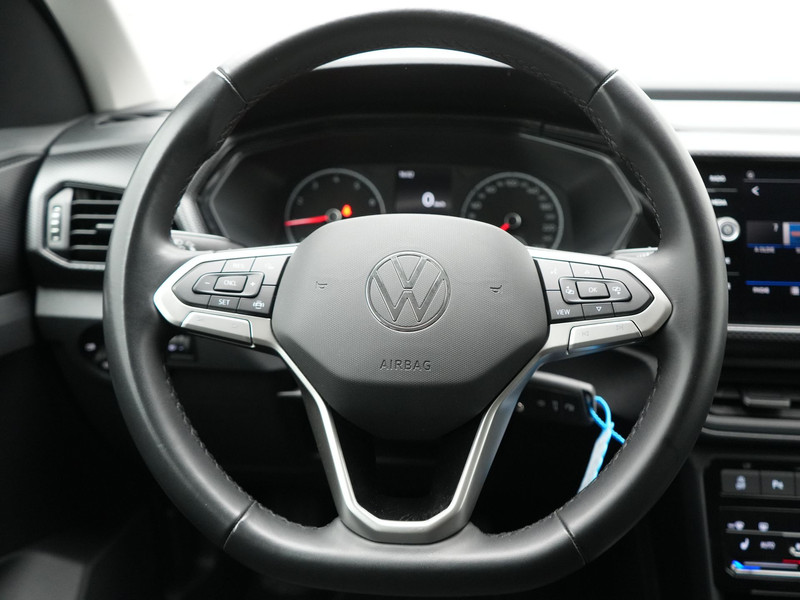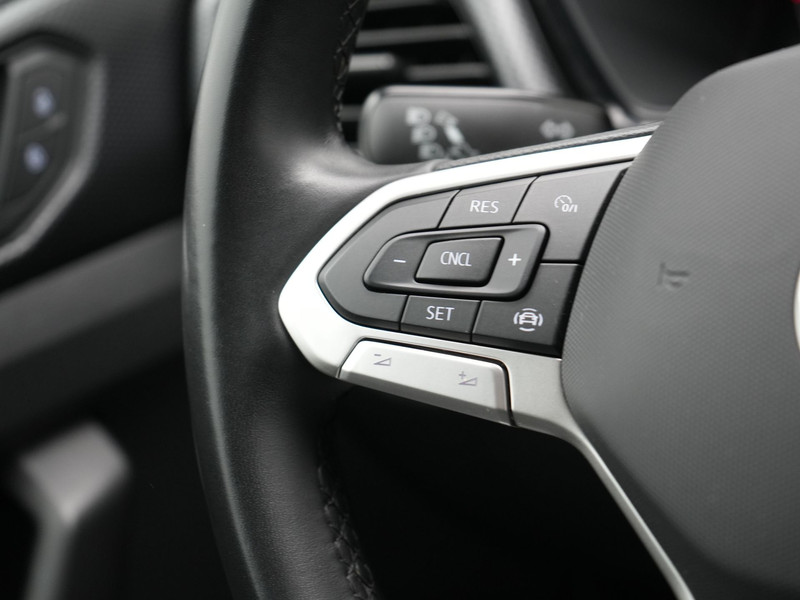 Locatie, motorconditie, storingen... via Connected Services krijgt u alle vitale info over de auto door. Ook handig bij pech! Deze Volkswagen is voorzien van knoppen op het stuur om het navigatiesysteem en het audiosysteem met DAB-ontvangst te bedienen. Of het buiten nu warm is of koud, dankzij electronic climate control is het binnen altijd behaaglijk. Boem is ho? Niet bij deze Volkswagen T-Cross. De piepjes van de parkeersensoren waarschuwen u op tijd voor obstakels. Ook is de Volkswagen uitgerust met: lederen stuur, isofix-aansluiting, centrale deurvergrendeling met afstandsbediening en boordcomputer.