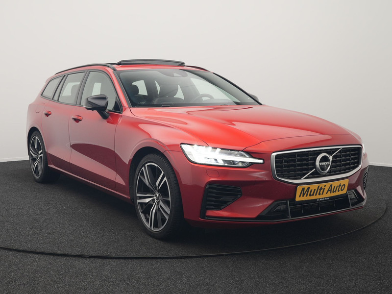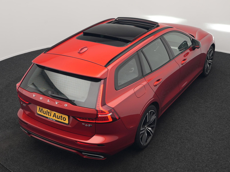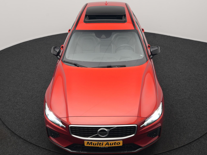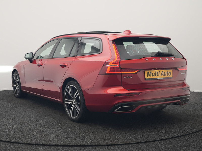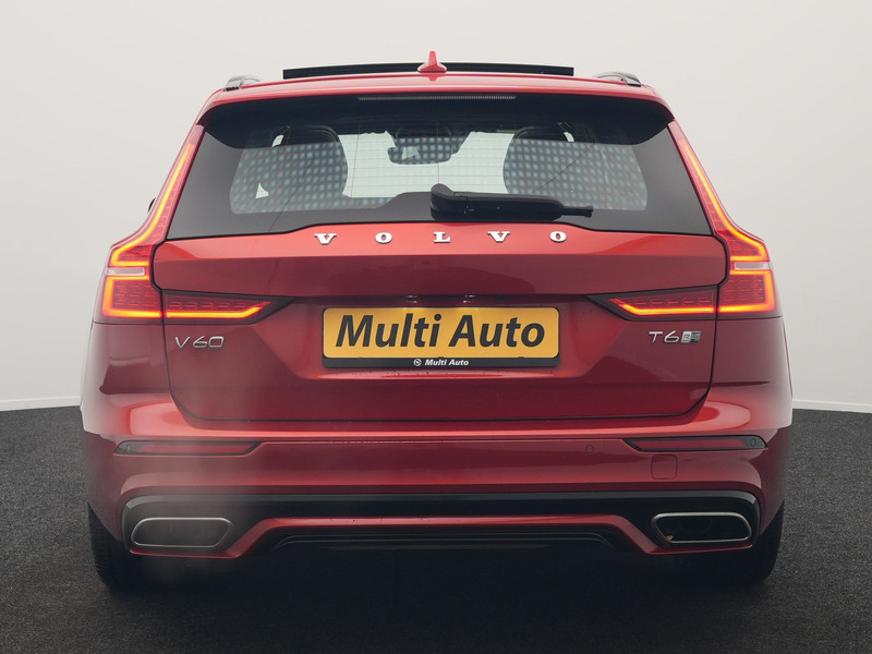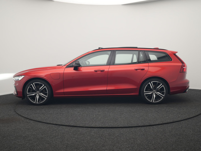 Volvo V60 T6 Twin Engine AWD R-Design Plug In Hybrid 340pk Dealer O.H. PHEV | Trekhaak Af Fabriek | Panodak | Head Up | Adaptive Cruise | 360 Camera | Lederen Sportstoelen Memory & Verwarmd | Apple Carplay | Stuur Verwarmd | Blis | Keyless | Navigatie | DAB |