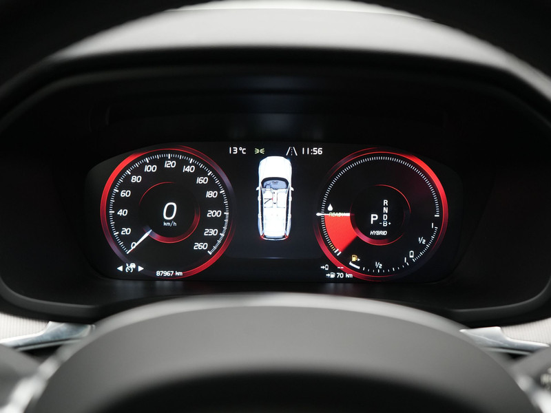 Pragmatisch en veilig als deze auto is, beschikt hij over diverse veiligheidssystemen. De camera van de verkeersborddetectie herkent verschillende soorten verkeersborden en toont deze op het dashboard. Het Lane-keeping systeem zorgt dat u mooi binnen de lijntjes blijft. Ongemerkt buiten de rijstrook komen is er niet meer bij. Als een ander voertuig in uw dode hoek rijdt, waarschuwt het systeem met een signaal. In deze Volvo vinden we verder een head-up display, forward collision warning system, hill hold functie, brake assist, vermoeidheidsherkenning en bandenspanningcontrolesysteem.