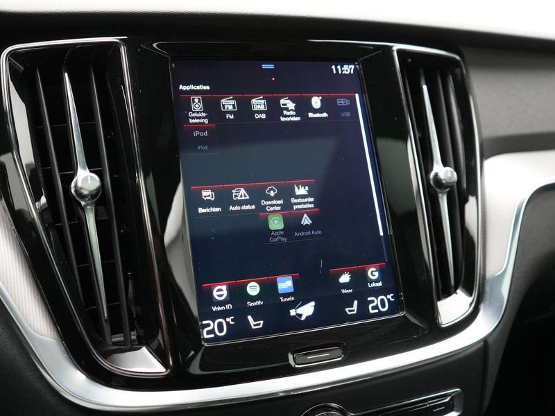 Met zijn strakke vormgeving, zijn hoge veiligheidsniveau en het geweldige comfort van deze Volvo V60, onderscheidt deze auto zich van de massa. Dit is een dealeronderhouden auto uit 2020 die 87958 kilometer op de teller heeft. De hybride motor combineert het gebruik van brandstof en elektriciteit, en dat maakt van deze Volvo V60 een zuinige, slimme auto. Misschien valt u voor het lederen interieur. Maar wat een licht van binnen ook, dankzij het elektrisch bediende glazen panorama dak; en niet te vergeten het grote gemak van een elektrisch bedienbare achterklep. Neem plaats op de comfortabele stoelen. Dankzij de elektrische bediening en het geheugen is het eenvoudig om hierin de beste zitpositie te vinden. Rijcomfort wordt naar een hoger niveau getild in deze auto, met inbegrip van stoelverwarming, een verwarmbare achterbank en een verwarmbaar stuur. De uitmonstering van deze auto wordt gecompleteerd door onder meer 19 inch lichtmetalen velgen, LED koplampen, donker getint glas achter, in delen neerklapbare achterbank en verstelbare lendensteunen.