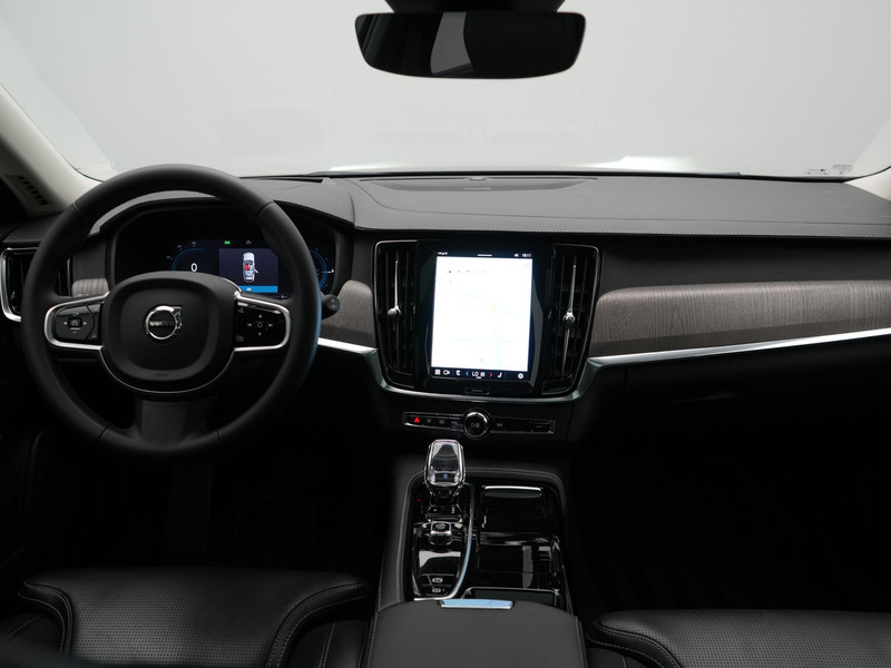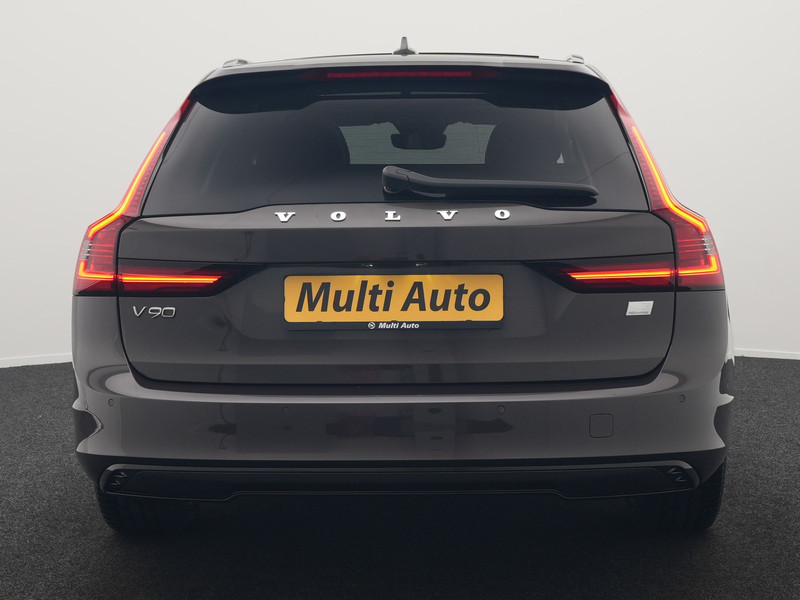 Het zijn de innovatieve veiligheidstechnieken in de Volvo V90 die zorgen dat u onderweg zoveel mogelijk wordt beschermd. Maar wist u dat veiligheid ook heel mooi kan zijn? Kijk maar eens goed naar de elegante lijnen van deze auto. Deze hybride heeft dankzij de extra elektromotor een zeer laag brandstofverbruik. Het interieur is luxe uitgevoerd met leren bekleding. Dankzij de elektrische stoelbediening is het gemakkelijk om de optimale zitpositie te vinden. Dat noemen ze nou een ruimtelijk effect: het elektrisch bediende glazen panoramadak. De bagageruimte is toegankelijk via een comfortverhogende elektrische achterklep. Laat ze achterin ook maar genieten: deze Volvo V90 is uitgevoerd met een verwarmde achterbank. Bij de zeer complete uitrusting van deze auto behoren ook 19 inch lichtmetalen velgen, Full LED koplampen, in delen neerklapbare achterbank, LED-achterlichten en verstelbare lendensteunen.