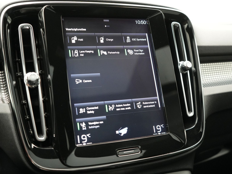 Zoals u mag verwachten van deze Volvo XC40 is hij uitgerust met een reeks aan actieve veiligheidssystemen. De actuele snelheidslimiet, een inhaalverbod en andere verkeersborden; de verkeersborddetectie ondersteunt u tijdens elke rit. Ongemerkt buiten de rijstrook raken? Nee hoor, het Lane-keeping systeem waarschuwt en corrigeert. Mindert een voorligger onverwachts te veel vaart, dan komt de forward collision warning in actie en waarschuwt meteen. U bent mede dankzij hill hold functie, brake assist, vermoeidheidsherkenning en bandenspanningcontrolesysteem steeds veilig onderweg.