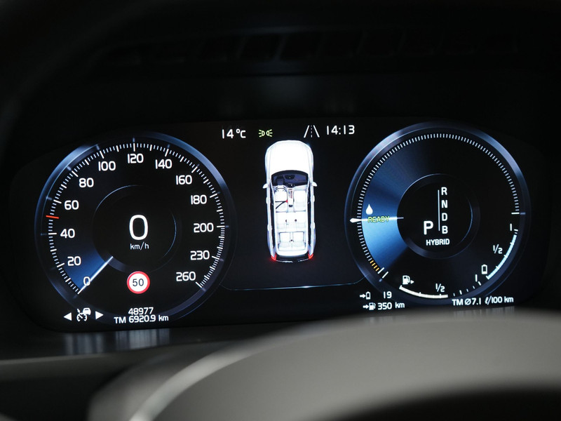 Zoals u mag verwachten van deze Volvo XC90 is hij uitgerust met een reeks aan actieve veiligheidssystemen. Dat de auto steeds meer taken van de bestuurder overneemt, merkt u bijvoorbeeld aan het systeem voor verkeersbord-detectie in deze auto. Een camera houdt de juiste koers binnen de rijstrook in de gaten en het Lane-keeping systeem corrigeert bij afwijkingen. De sensor van het forward collision warning-systeem registreert permanent de afstand tot voorliggers en grijpt in als een botsing dreigt. Dankzij veiligheidsvoorzieningen als dodehoekdetectie, hill hold functie, brake assist, vermoeidheidsherkenning en bandenspanningcontrolesysteem, bent u steeds veilig onderweg.